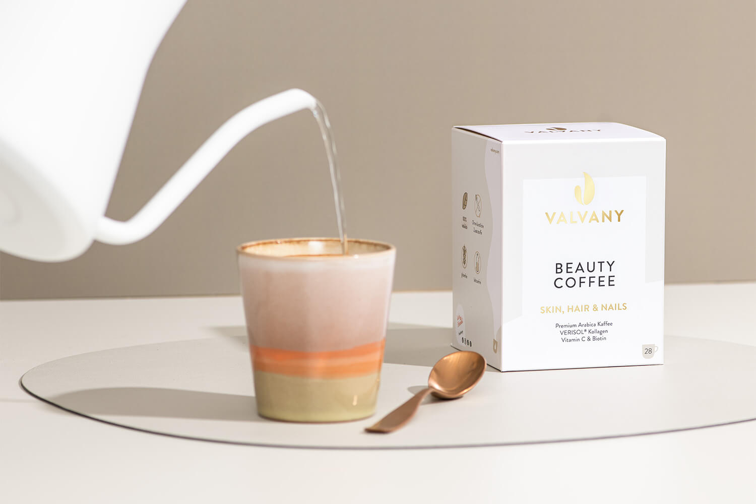 - Hochdosiertes VERISOL® Kollagen, antioxidatives Vitamin C, Biotin und Silizium treffen auf feinsten Arabica Kaffee